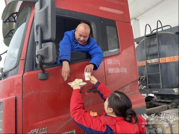 荊楚網(wǎng)(湖北日?qǐng)?bào)網(wǎng))訊(通訊員施艷芳、仰慕菡)位于國道316線的中國石化湖北孝感安陸大鵬加能站,服務(wù)的大貨車幾乎都是全年奔波在各地的“過路客”,因湖北近期大雪,許多貨車司機(jī)滯留在路邊。2月5日,大鵬加能站站長耿險(xiǎn)峰帶領(lǐng)員工們主動(dòng)走出站,給他們送暖心便餐和剛出鍋的小籠包,為他們的水杯倒?jié)M熱水,還免費(fèi)提供熱飲。上午兩個(gè)小時(shí)的時(shí)間里,大鵬加能站已送出一百多份小籠包。司機(jī)師傅們紛紛豎起大拇指,連連稱贊。