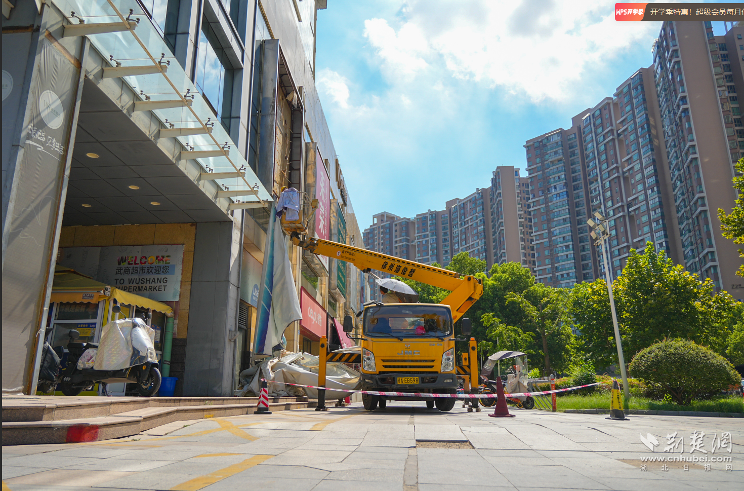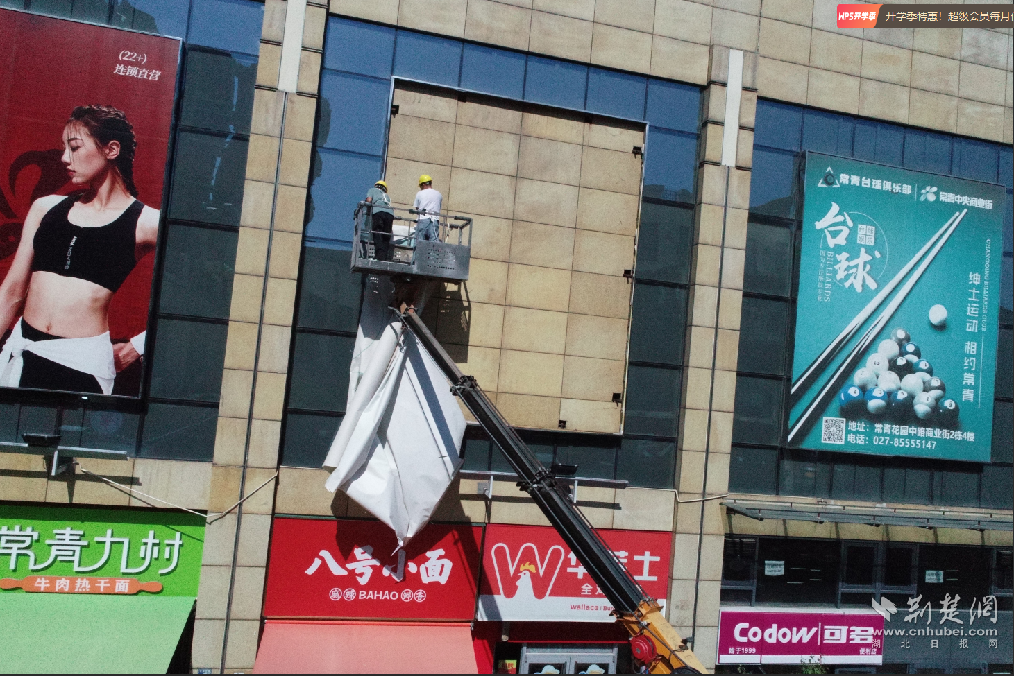 “存在安全隱患的廣告,堅(jiān)決依法拆除,絕不姑息!”8月19日上午,在常青花園中央商業(yè)街武商量販門前,東西湖區(qū)城管執(zhí)法局市政科相關(guān)負(fù)責(zé)人介紹說(shuō)。在現(xiàn)場(chǎng),施工人員正搭乘高空作業(yè)車,對(duì)武商量販外立面的問(wèn)題廣告進(jìn)行一一拆除。據(jù)了解,常青花園中央商業(yè)街人流量大、廣告設(shè)置密集,部分廣告牌因長(zhǎng)期風(fēng)吹日曬出現(xiàn)畫(huà)面破損等問(wèn)題,既影響市容環(huán)境,更對(duì)市民安全構(gòu)成潛在威脅。