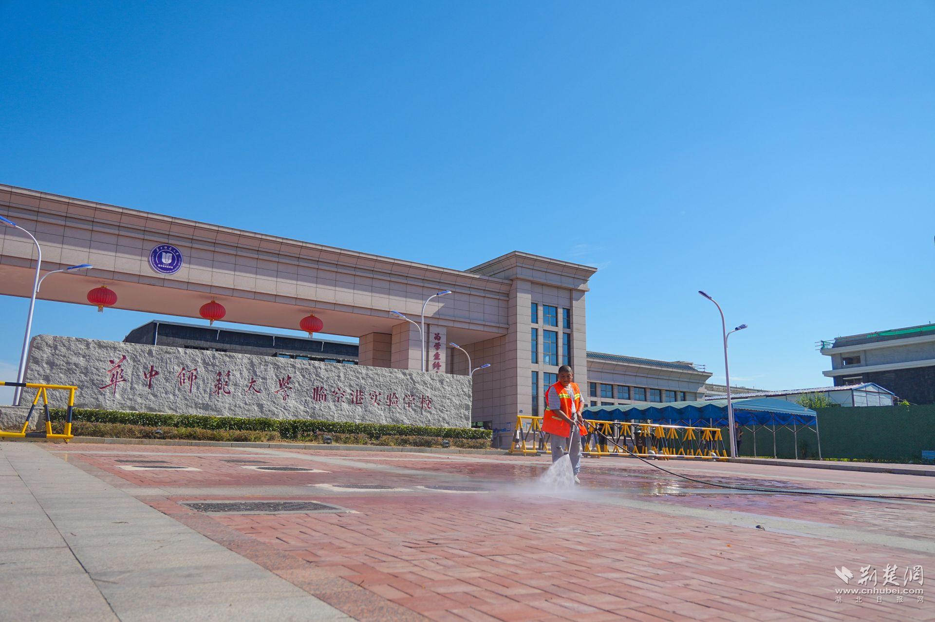 校園周邊環(huán)境的整潔同樣關(guān)系到孩子們的安全與健康。8月29日清晨,在華中師范大學臨空港實驗學校門口,7名環(huán)衛(wèi)工人配合一輛高壓沖洗車,正對人行道、護欄、公交站臺進行細致清潔,地磚縫隙間的落葉、油漬也不放過。