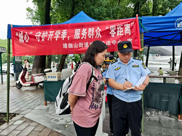 在校內(nèi)外的兩處宣傳服務(wù)點(diǎn),綜合執(zhí)法中心工作人員不僅發(fā)放法規(guī)宣傳資料,耐心講解市容管理、攤販經(jīng)營(yíng)等規(guī)定,更主動(dòng)為新生及家長(zhǎng)提供指路、拍照、咨詢等暖心服務(wù)。許多新生家庭在宣傳點(diǎn)留下入學(xué)第一張合影,執(zhí)法人員熱情擔(dān)任“攝影師”,用鏡頭記錄初入珞珈的喜悅瞬間。一位韓國(guó)留學(xué)生因語(yǔ)言不通在宣傳點(diǎn)求助,執(zhí)法隊(duì)員立即手繪詳細(xì)地圖并標(biāo)注路線,幫助其順利找到目的地。留學(xué)生用中文連聲道謝,并向隊(duì)員豎起大拇指。