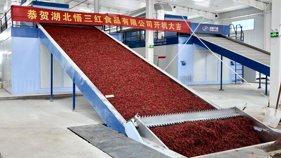 這座今年正式投產(chǎn)、扎根田間地頭的辣椒烘干廠,正以其獨(dú)特的“紅火”勢(shì)頭,成為推動(dòng)當(dāng)?shù)剜l(xiāng)村產(chǎn)業(yè)振興、帶動(dòng)農(nóng)民增收的新引擎。烘干廠配備了2條中國第六代智能節(jié)能辣椒烘干生產(chǎn)線,滿負(fù)荷運(yùn)轉(zhuǎn)可日烘鮮椒20萬斤,年加工量超過3萬噸。通過精準(zhǔn)的溫濕度控制技術(shù),工廠能在短時(shí)間內(nèi)將鮮椒高效烘干至標(biāo)準(zhǔn)含水量,極大提升了本地辣椒的附加值,有效解決了鮮椒集中上市時(shí)面臨的銷售難、儲(chǔ)存難問題,讓豐店鎮(zhèn)及周邊地區(qū)的辣椒種植戶吃下了“定心丸”。它不僅延伸了辣椒產(chǎn)業(yè)鏈條,更將季節(jié)性農(nóng)產(chǎn)品轉(zhuǎn)化為具有更高價(jià)值和更長貨架期的商品。