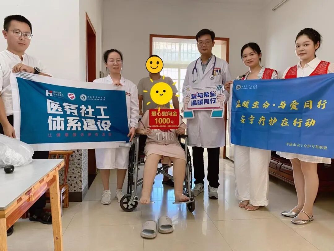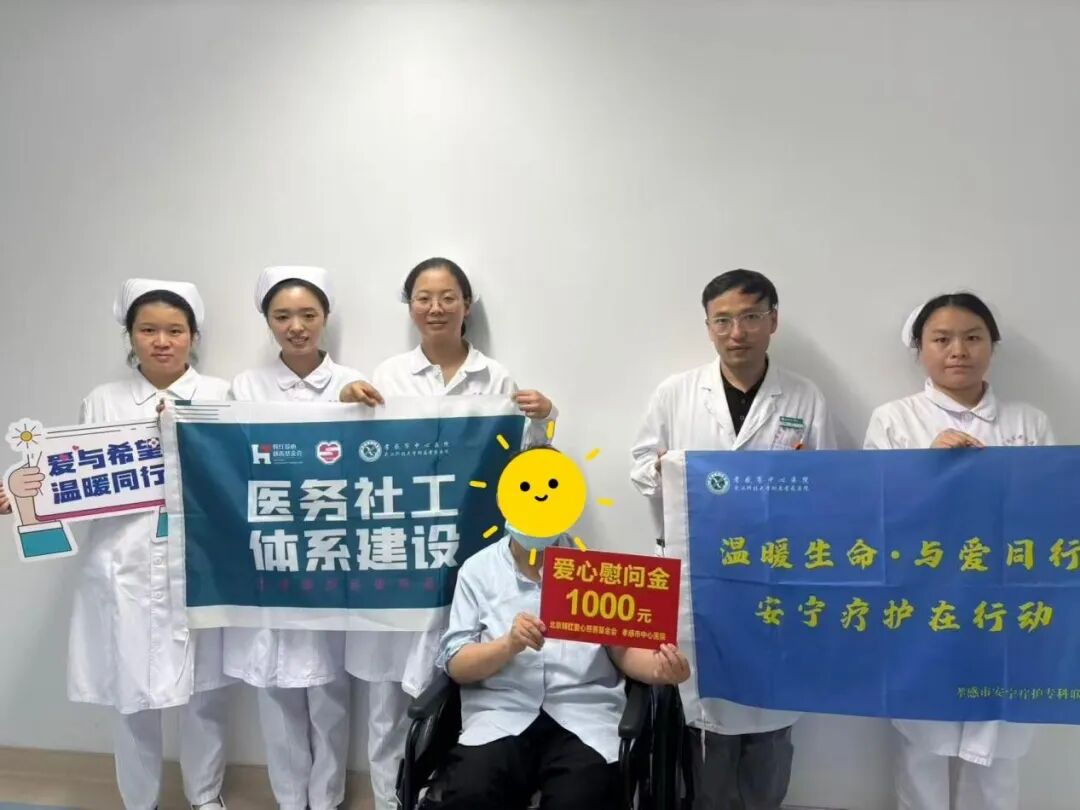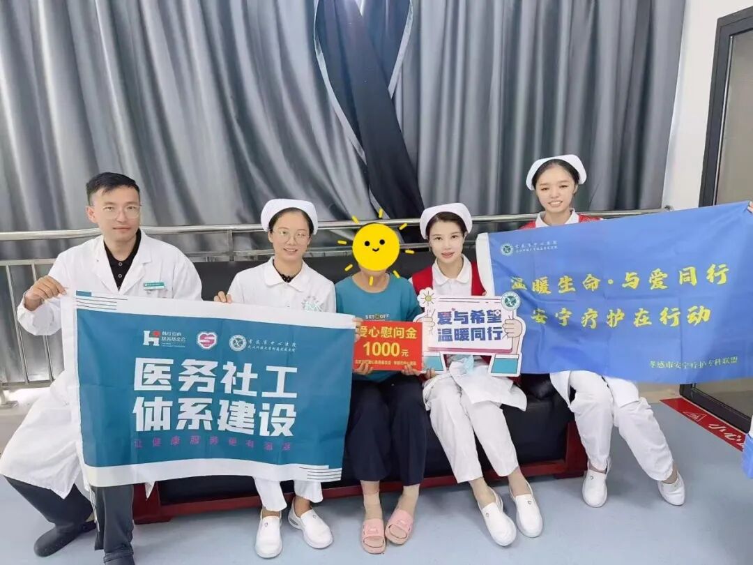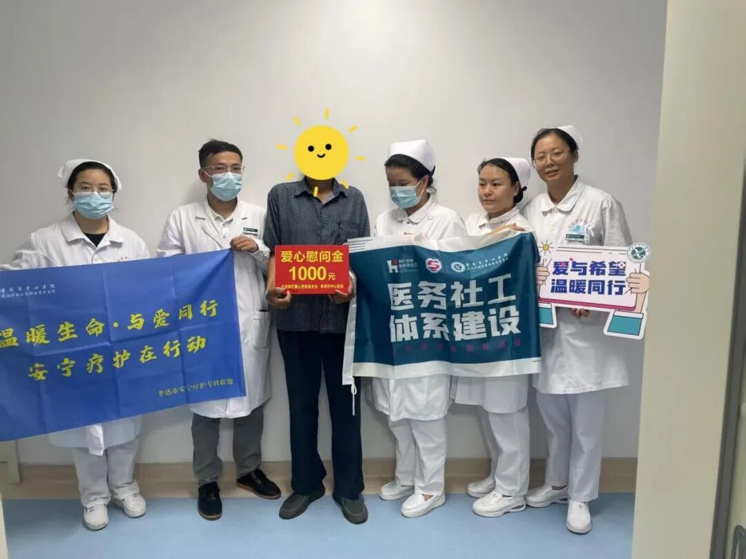 在此次關(guān)愛行動中,市中心醫(yī)院積極鏈接社會慈善資源,與北京韓紅愛心慈善基金會展開深度合作。8月份期間,共為7戶經(jīng)濟(jì)特別困難的末期癌癥患者家庭每戶送去了1000元慰問金。這筆來自韓紅基金會的愛心善款,在一定程度上緩解患者家庭在應(yīng)對疾病過程中產(chǎn)生的經(jīng)濟(jì)壓力,也讓他們真切地感受到了社會各界的深切關(guān)懷。