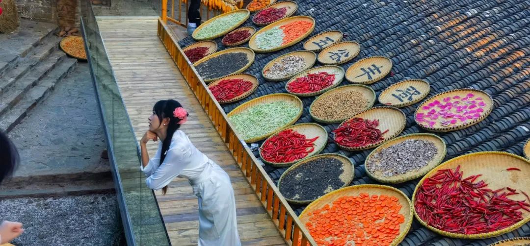 【豐收調(diào)色盤】登高遠(yuǎn)眺,整個(gè)古村宛如打翻的調(diào)色盤。辣椒紅、玉米黃、南瓜橙...在青瓦飛檐間鋪展成壯觀的豐收圖卷。最佳攝影點(diǎn)已就位,等您收錄今秋最動(dòng)人的畫。
