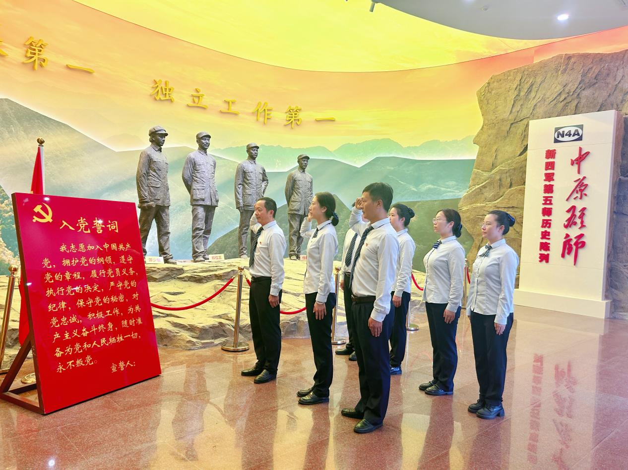 在紀(jì)念館前,全體黨員回顧了九一八事變的歷史教訓(xùn)。94年前,九一八事變爆發(fā),東北淪陷,無(wú)數(shù)仁人志士投身抗戰(zhàn)。站在鄂豫邊區(qū)的革命圣地上,大家深刻體會(huì)到,九一八事變帶來(lái)的民族苦難,激發(fā)了全民族的救亡斗志,也為新四軍第五師等抗日武裝的抗戰(zhàn)奠定了歷史背景。