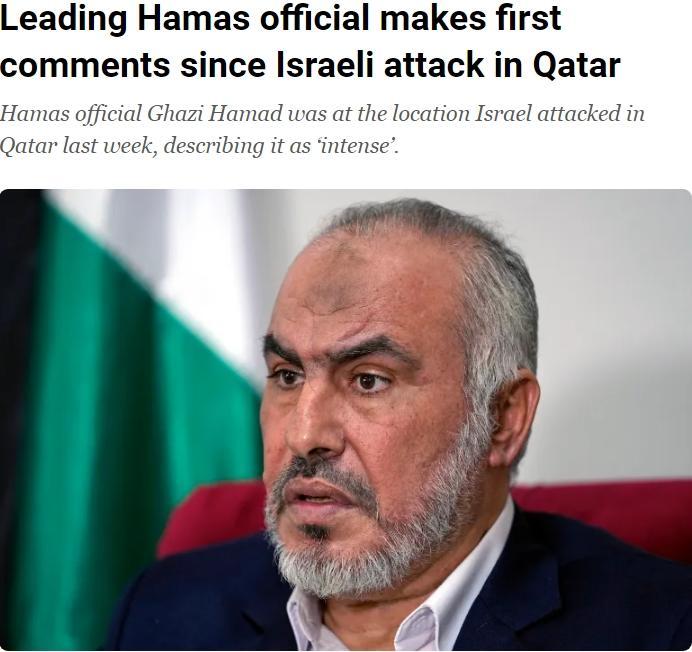 加齊·哈馬德表示,空襲發(fā)生在“我們開始研究加沙?;鹛嶙h不到一個(gè)小時(shí)之后”,哈馬斯領(lǐng)導(dǎo)層當(dāng)時(shí)正在討論美國(guó)通過(guò)卡塔爾轉(zhuǎn)交的一項(xiàng)建議。
