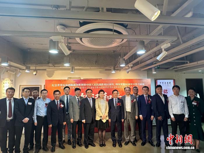 9月18日,《銘記和平——紀念世界反法西斯戰(zhàn)爭暨中國人民抗戰(zhàn)勝利80周年、韓國光復80周年中韓書畫展》在首爾中國文化中心開幕。圖為活動合影。姜春雨 攝