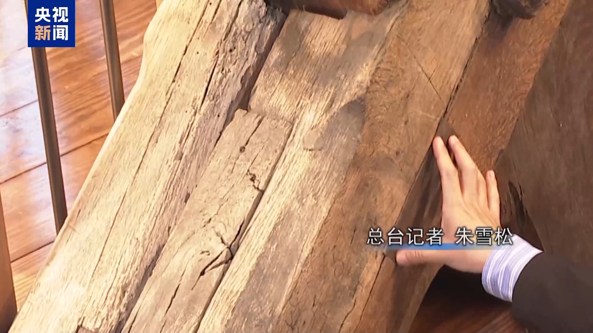 總臺記者 朱雪松:在參觀過程中,一些細(xì)節(jié)也給我留下深刻的印象。比如我旁邊的這條木梁其實(shí)是非常古舊的。修復(fù)過程中,工匠在上面做一些記號,同時用新的木結(jié)構(gòu)來代替一些破損的地方,可見修復(fù)過程采用了“修舊如舊”的原則。