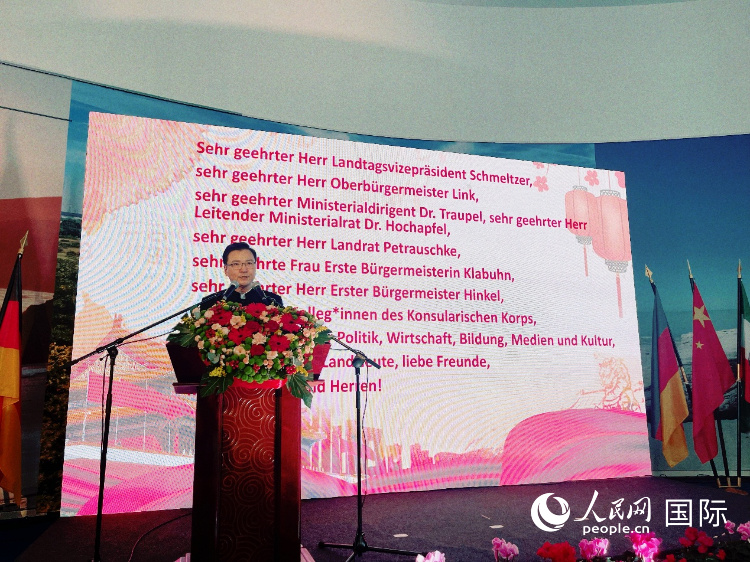 中國(guó)駐杜塞爾多夫總領(lǐng)事余勇致辭。人民網(wǎng)記者 劉赫攝