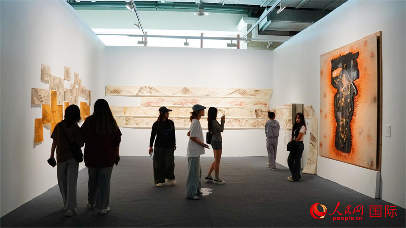 該展廳呈現(xiàn)意大利藝術(shù)家馬泰奧、羅馬尼亞藝術(shù)家安德烈婭、加拿大藝術(shù)家米歇爾、剛果(金)藝術(shù)家卡拉瑪與中國(guó)藝術(shù)家陳明坤作品。人民網(wǎng) 嚴(yán)小晶攝