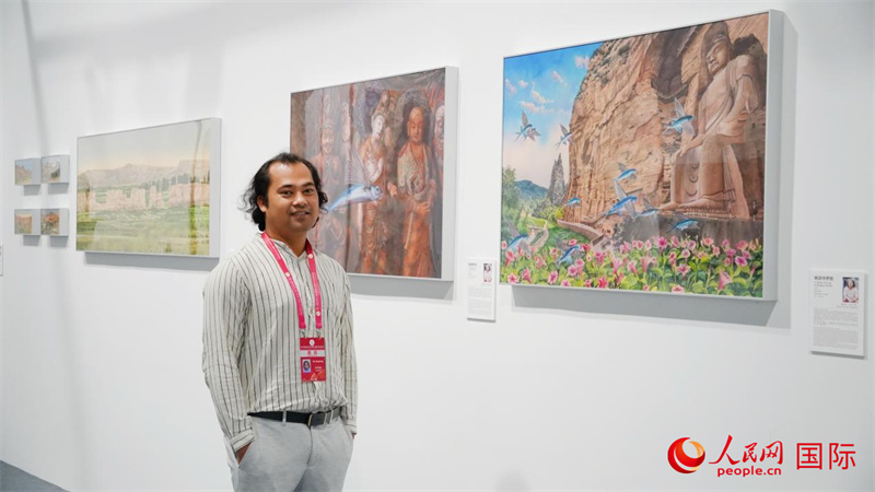 “非常開(kāi)心能全程參與此次從甘肅采風(fēng)、杭州共創(chuàng)到敦煌展出的全過(guò)程!”孟加拉國(guó)藝術(shù)家蒙蒙爍在敦煌文博會(huì)現(xiàn)場(chǎng)難掩激動(dòng)之情,他分享道:“這段經(jīng)歷注定銘刻于我生命之中。我們雖來(lái)自不同國(guó)度、使用不同語(yǔ)言,卻對(duì)美有著共同的追求,對(duì)和平懷有一樣的渴望,對(duì)未來(lái)秉持相通的信念。此次交流不僅為我們迸發(fā)出豐富的創(chuàng)作靈感,更讓我們結(jié)下了深厚而珍貴的友誼。”