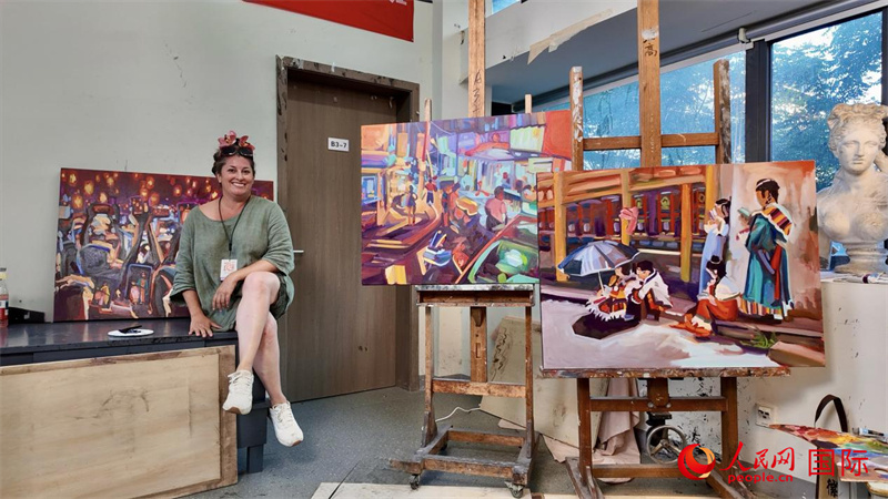 加拿大藝術(shù)家米歇爾在中國(guó)美術(shù)學(xué)院畫(huà)室創(chuàng)作。人民網(wǎng) 嚴(yán)小晶攝