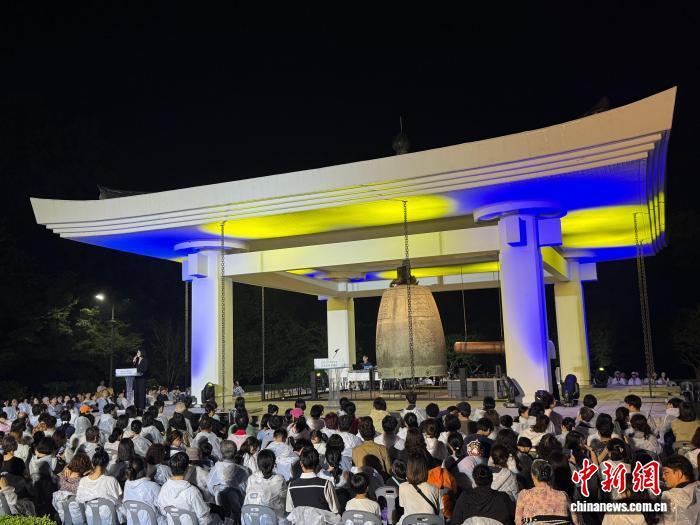 中新網韓國慶州9月25日電 (劉旭劉思寧)24日晚,韓國國立慶州博物館舉行圣德大王神鐘敲鐘儀式。這是自2003年以來,圣德大王神鐘時隔22年再次被敲響,當晚共敲擊12次,鐘聲回蕩夜空。