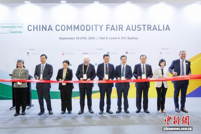 當(dāng)?shù)貢r間9月25日,第二屆中國消費(fèi)品(澳大利亞)品牌展在悉尼開幕。圖為中澳嘉賓為展會開幕剪彩?!≈行律绨l(fā) 中國商務(wù)部外貿(mào)發(fā)展事務(wù)局 供圖