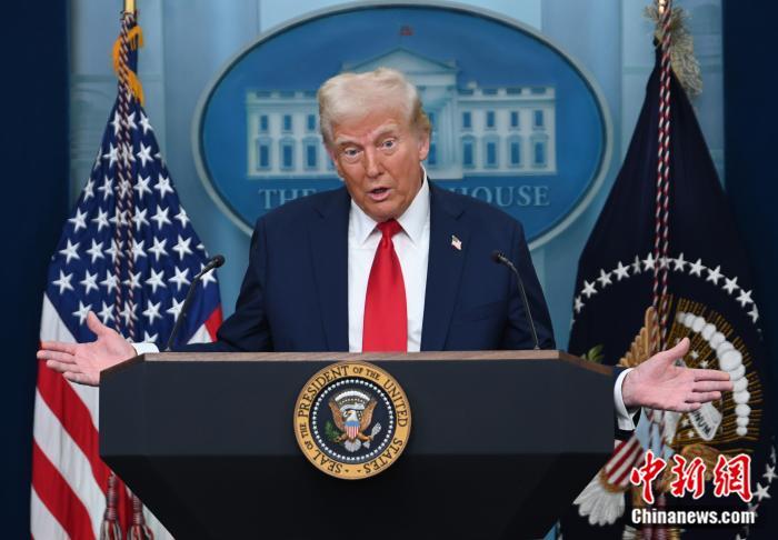 當(dāng)?shù)貢r間1月30日,華盛頓,美國總統(tǒng)特朗普在白宮舉行記者會, 中新社記者 陳孟統(tǒng) 攝