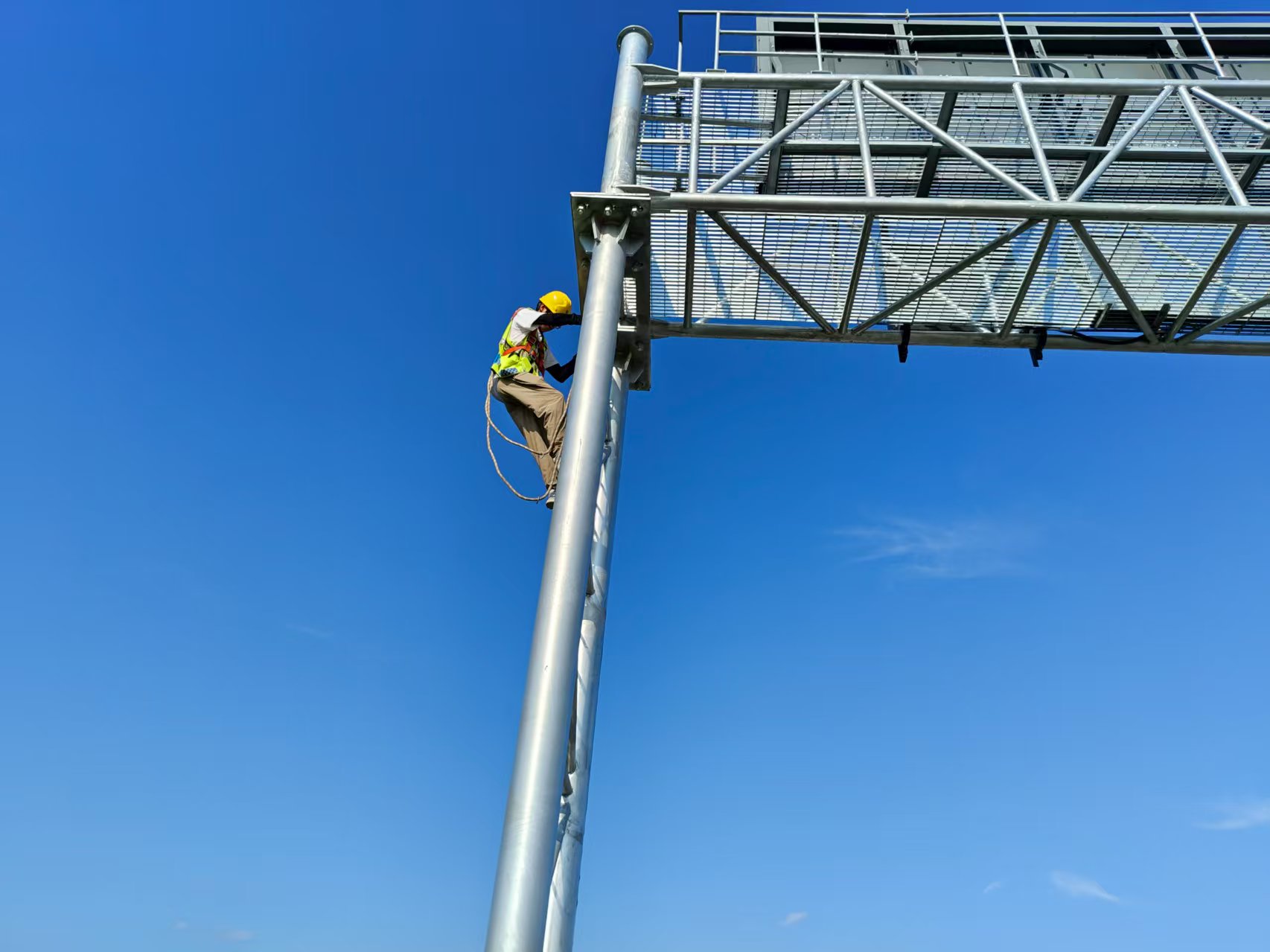 ETC門(mén)架、機(jī)電設(shè)施是高速運(yùn)營(yíng)的“神經(jīng)中樞”,直接關(guān)系道路通行效率。9月下旬,機(jī)電管理員彭龍系緊安全繩,順著檢修梯爬上孝漢應(yīng)高速ETC門(mén)架,手持檢測(cè)儀逐項(xiàng)排查網(wǎng)絡(luò)信號(hào)、設(shè)備運(yùn)行狀態(tài)?!岸嗖橐淮?,雙節(jié)通行就多一份保障?!彼林~頭的汗說(shuō),僅3天時(shí)間,團(tuán)隊(duì)已完成轄區(qū)內(nèi)20余座門(mén)架的全面檢查維護(hù)。