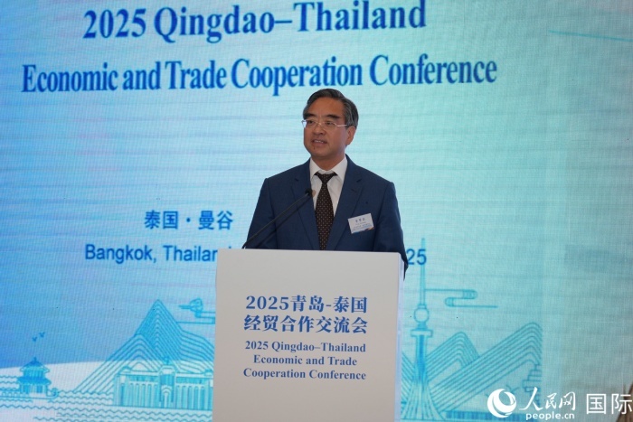 在泰國(guó)期間,代表團(tuán)與正大集團(tuán)、卡拉寶集團(tuán)等企業(yè)負(fù)責(zé)人會(huì)面交流,表示將持續(xù)深化雙方對(duì)接,積極推進(jìn)合作項(xiàng)目、促進(jìn)優(yōu)勢(shì)互補(bǔ),實(shí)現(xiàn)互利共贏發(fā)展。曾贊榮出席“2025青島-泰國(guó)經(jīng)貿(mào)合作交流會(huì)”,與泰國(guó)相關(guān)企業(yè)、商協(xié)會(huì)機(jī)構(gòu)負(fù)責(zé)人等進(jìn)行交流,全面介紹了青島經(jīng)濟(jì)社會(huì)發(fā)展情況,希望加強(qiáng)科技創(chuàng)新、產(chǎn)業(yè)發(fā)展、人才培養(yǎng)、航運(yùn)貿(mào)易等領(lǐng)域?qū)樱〉酶鄤?wù)實(shí)合作新成果