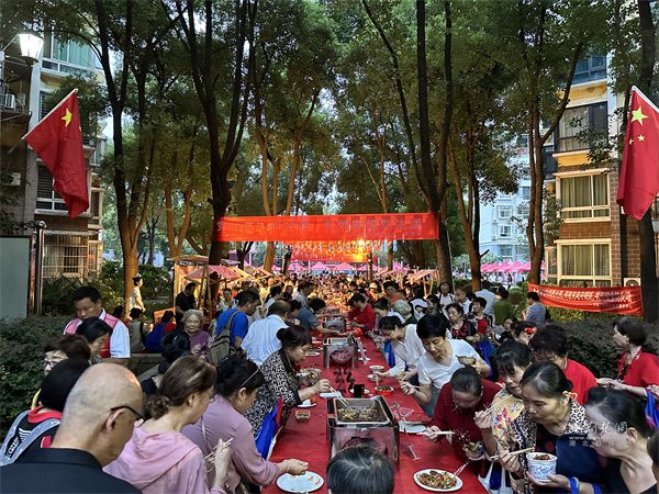 鄰里關(guān)系的升溫,離不開有溫度的聯(lián)結(jié)。如今城市里的單元樓,常隔著“一扇門的距離”,而社區(qū)的百家宴,恰好打破了這份疏離。紅燒排骨、手工餃子、梅菜扣肉,百余道家常菜擺成長桌,陌生鄰里因一道菜打開話匣子,老街坊借一碗湯嘮起家常;10位高齡老人與祖國同慶生,全場齊唱的《生日歌》里,藏著對長輩的敬重,也裹著“社區(qū)是家”的歸屬感。比起刻意的破冰活動,這樣帶著煙火氣的相聚,更能讓鄰里情在自然中流淌。