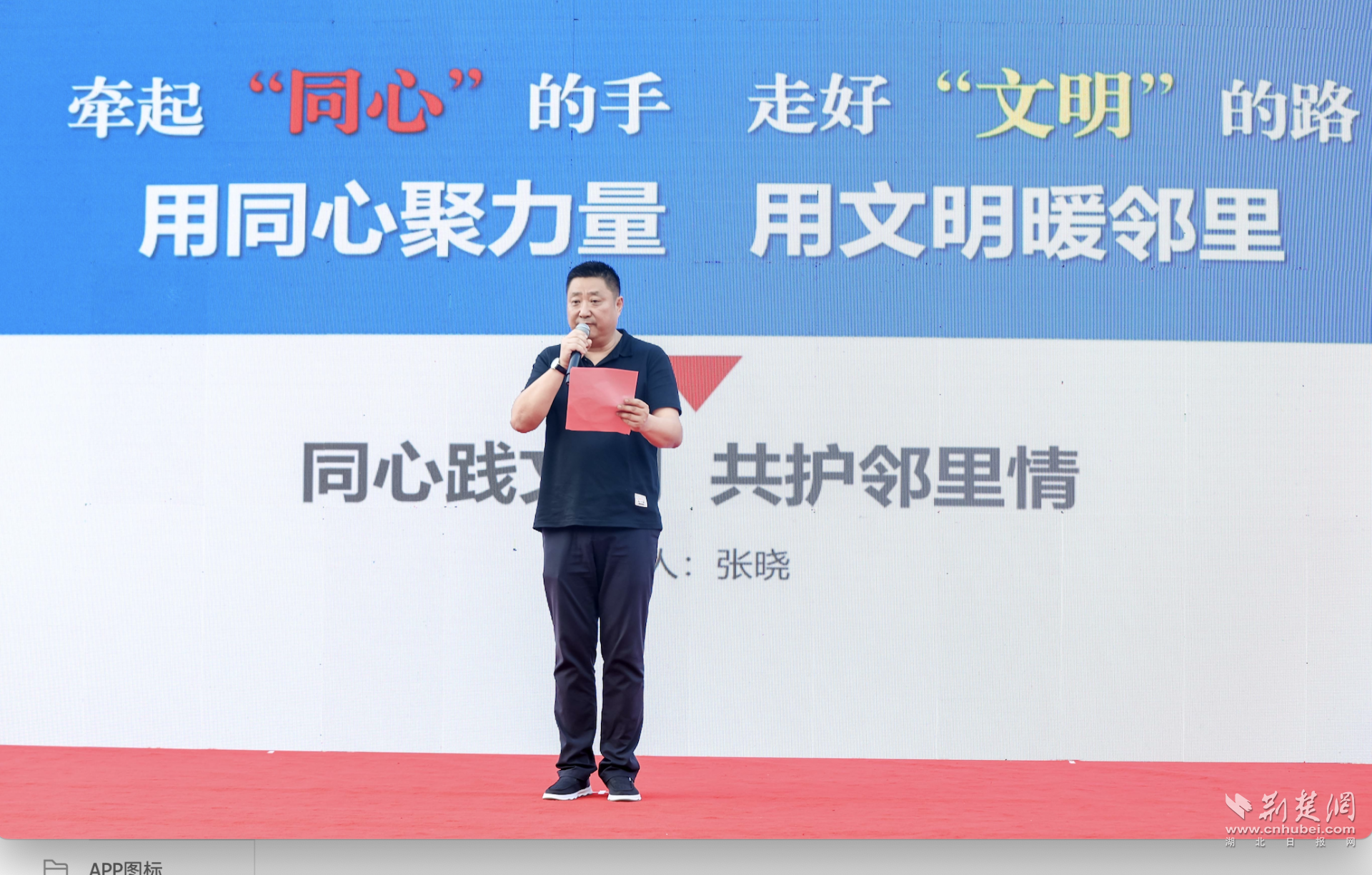 活動(dòng)特別設(shè)置了文明微宣講環(huán)節(jié)。2022年第三季度“湖北好人”、2023年武漢市首屆“同心奮斗者”張曉分享了他的文明實(shí)踐故事。作為漢陽區(qū)新的社會(huì)階層人士聯(lián)誼會(huì)副會(huì)長、漢陽區(qū)清露社會(huì)工作服務(wù)中心主任,張曉以《同心踐文明 共護(hù)鄰里情》為題,講述了在日常生活中踐行文明理念的點(diǎn)滴經(jīng)歷。