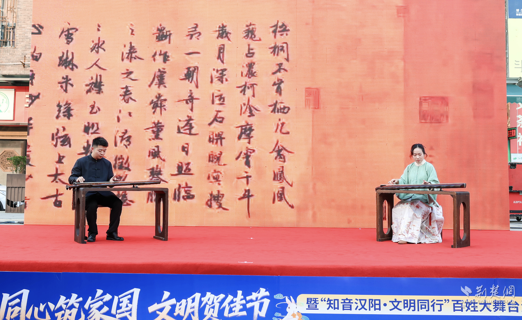 相聲《夸住宅》通過幽默詼諧的方式,展現(xiàn)了新時(shí)代市民生活的幸福質(zhì)感。表演者李雯琪和張晴天作為新的社會(huì)階層人士代表,用接地氣的語言引起了現(xiàn)場(chǎng)觀眾的陣陣笑聲和共鳴。古琴演奏《流水》則成為整場(chǎng)活動(dòng)的文化亮點(diǎn),武漢古琴研究會(huì)副秘書長陳嘉偉和呂雙的雙古琴演奏,讓現(xiàn)場(chǎng)觀眾沉浸在千年知音文化的深厚底蘊(yùn)中。