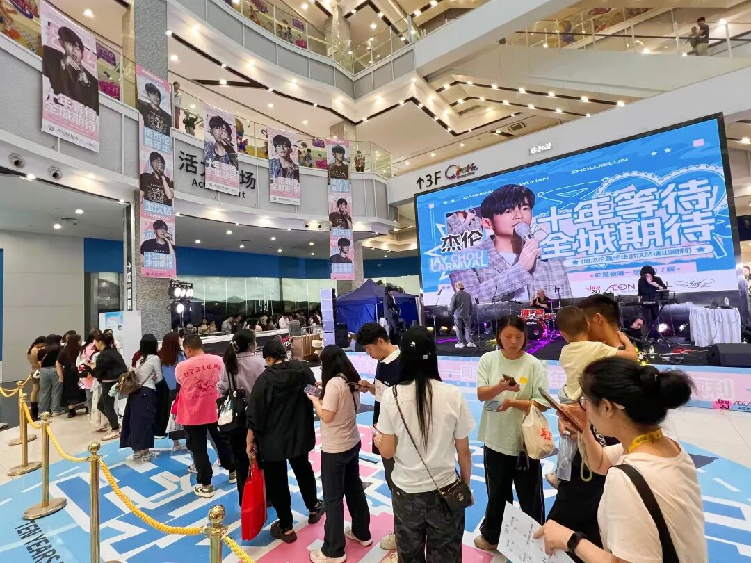 9月26日—28日,周杰倫主題音樂(lè)會(huì)嘉年華活動(dòng)在永旺夢(mèng)樂(lè)城武漢經(jīng)開(kāi)購(gòu)物中心連續(xù)三天上演?!敖苊浴眰冋具M(jìn)專屬打卡框,與“杰倫”同框合影,參加粉絲互動(dòng)活動(dòng),領(lǐng)取應(yīng)援周邊,沉浸式體驗(yàn)“倫”式浪漫。永旺夢(mèng)樂(lè)城武漢經(jīng)開(kāi)購(gòu)物中心相關(guān)負(fù)責(zé)人告訴記者,9月27日,永旺夢(mèng)樂(lè)城接待市民近10萬(wàn)人,銷售額超800萬(wàn)元。