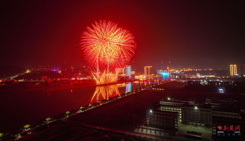 荊楚網(wǎng)(湖北日?qǐng)?bào)網(wǎng))訊(記者 胡小軍 通訊員 吳滕鈺)10月2日晚,英山縣城區(qū)一河兩岸霓虹閃爍,親水步道上鮮艷的國旗迎風(fēng)飄揚(yáng),處處洋溢著喜慶熱烈的節(jié)日氣氛。大別山文學(xué)廣場周圍成為縣城熱度最高的地區(qū),上萬名市民、游客從四面八方匯集于此,大家翹首以盼,提前拿出手機(jī),選好角度,用鏡頭定格即將開始的視覺盛宴。