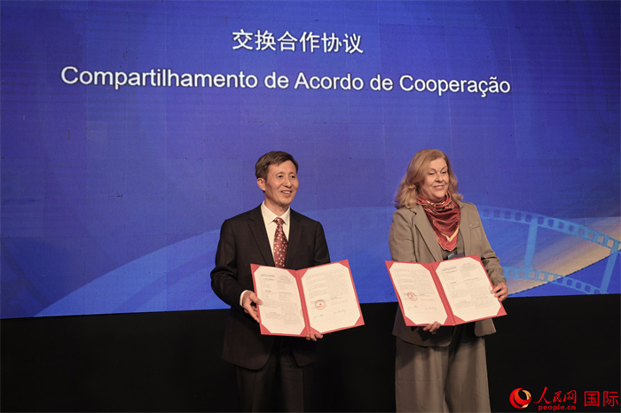 中央廣播電視總臺與巴西盒子媒體集團在第五屆巴西“中國影視作品展播季”活動中交換影視節(jié)目播出合作協(xié)議。人民網記者 時元皓攝