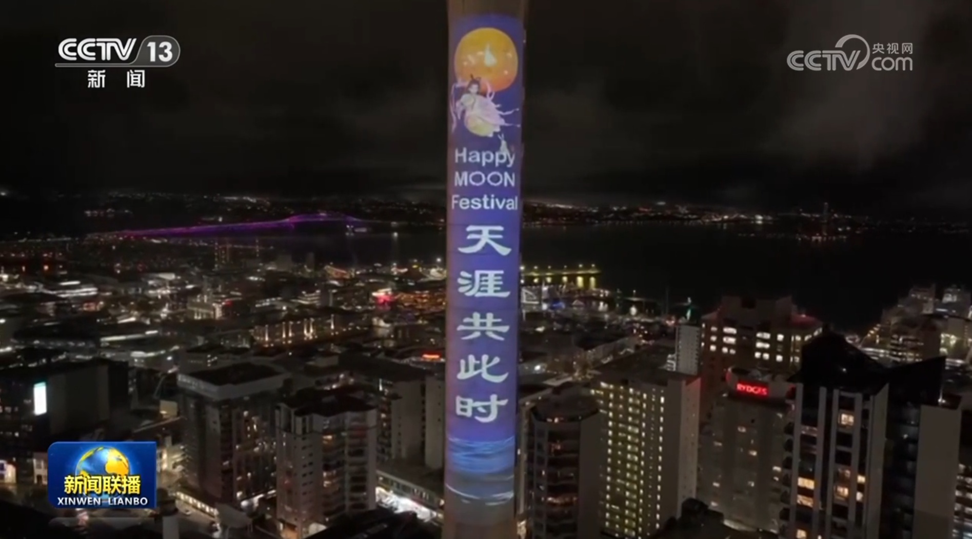 新西蘭奧克蘭日前首次舉行中秋投影活動,以傳統(tǒng)水墨為靈感,嫦娥、玉兔、月餅等中秋元素投射在奧克蘭標志性建筑天空塔上,讓當?shù)孛癖姼惺苤腥A文化的魅力。