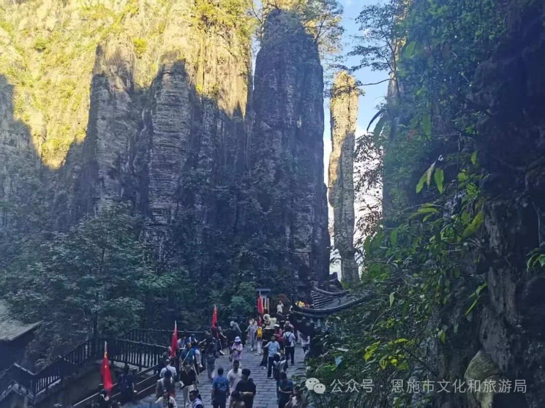 金秋恩施,山河如畫(huà)。2025年“國(guó)慶中秋”假期,恩施市在持續(xù)高漲的旅游熱度中,交出了一份“安全、有序、暖心、高效”的文旅答卷。假日期間,全市累計(jì)接待游客142.22萬(wàn)人次,綜合收入6.51億元,同比2024年分別增加10.69%,9.55%;同比2023年分別增加61.91%,39.40%。