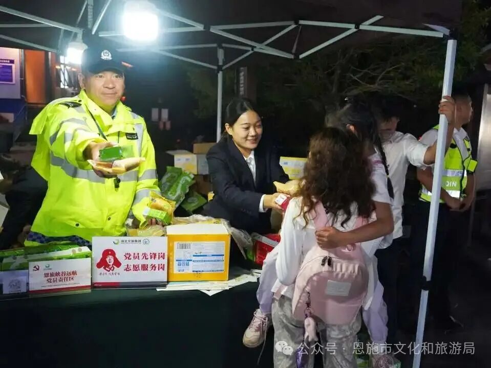 “暖心八條”措施直面游客便利出行,機(jī)關(guān)企事業(yè)單位停車(chē)場(chǎng)免費(fèi)對(duì)外開(kāi)放,被游客譽(yù)為“最實(shí)在的歡迎禮”。此外,全市組織的600余名志愿者,則是這種城市溫度的直接傳遞者,也構(gòu)成了恩施的另一道溫暖風(fēng)景。在高速路口,志愿者小沈正為一位風(fēng)塵仆仆的自駕游客遞上熱水:“我們不僅要解答咨詢(xún),更要讓每一位來(lái)到恩施的游客感受到我們的熱情?!痹诰皡^(qū)入口處,穿著紅馬甲的志愿者耐心引導(dǎo)即將入園的游客,他們的微笑成為恩施最美的風(fēng)景線。