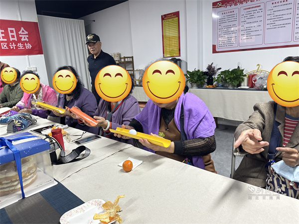 互動游戲后,生日蛋糕緩緩推來,全場人員齊聲高唱《生日快樂歌》。長者們圍坐在一起,閉眼許愿,共同吹滅蠟燭,隨后開心地分享著甜蜜的蛋糕,每一口都飽含著社區(qū)的關懷與鄰里間的情誼。