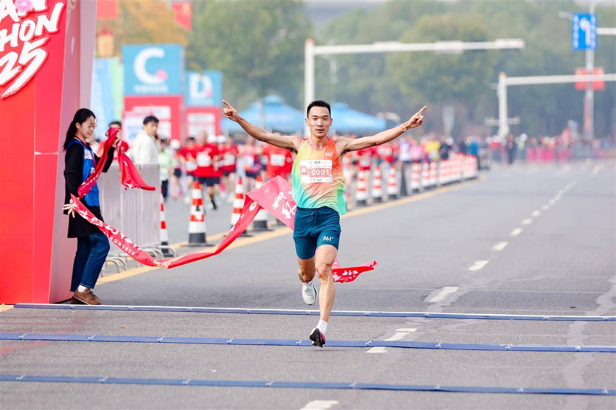 蒙牛2025孝感馬拉松選手沖過終點線。(孝感馬拉松組委會供圖)