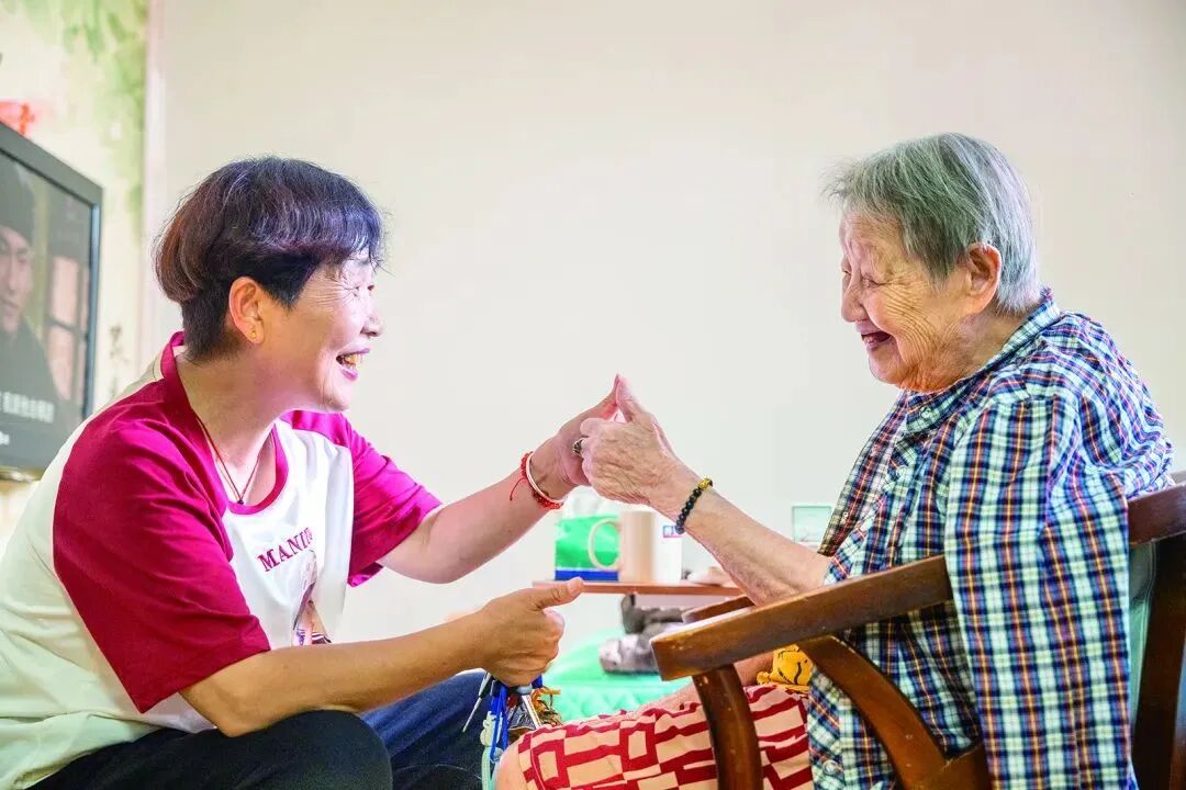 “詹媽媽”“徐爹爹”……于文英在每把鑰匙上細(xì)心貼上標(biāo)簽,以防混淆。隨著時(shí)間的推移,老人們對(duì)她的稱呼也由“小于”變?yōu)榱恕肮媚铩薄把绢^”“閨女”,而她則親昵地回應(yīng)著“爸”“媽”。這份超越血緣的親情,在社區(qū)的每個(gè)角落悄然綻放,溫暖著每一個(gè)人的心房。